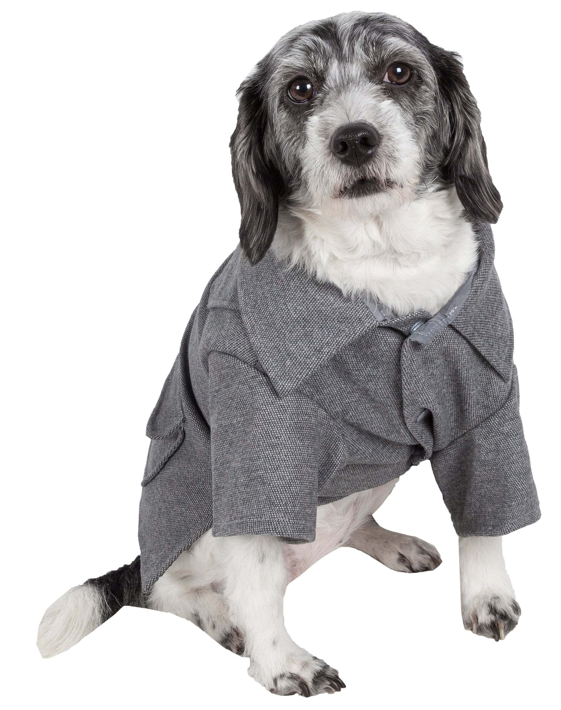 The Pet Life Sargeant Riveted Fashion Collared Wool Dog Coat is composed of 100% cotton wool and features accented rivet details along the backside with a dual back-pocket. This pet coat also features snap button closure by the belly for easy on/off access and a leash slit holder behind the neck area. Available in multiple sizes.
